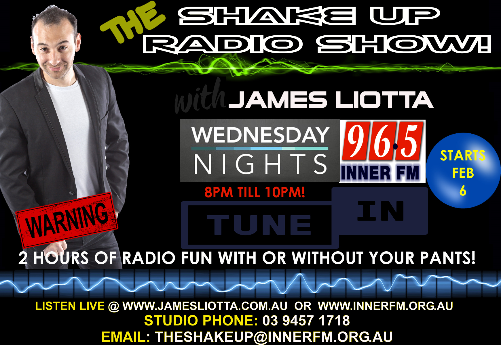 Every Wednesday night you can tune into THE SHAKE UP RADIO SHOW hosted by James Liotta from 8PM in Melbourne on 96.5 INNER FM.