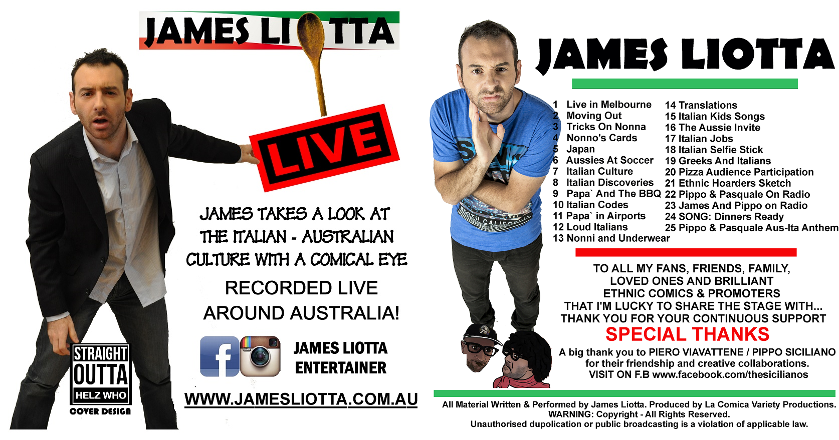 James Liotta is constantly working on stage right around Australia as a performer and stand up comedian, with a focus on his ethnic comedy (Italian-Australian) routines.