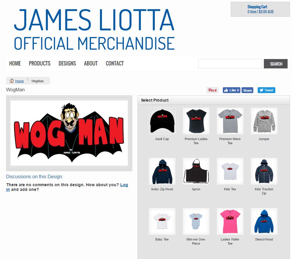 The “T’AMMAZZO” & “WOG-MAN” design is available across all these products.
